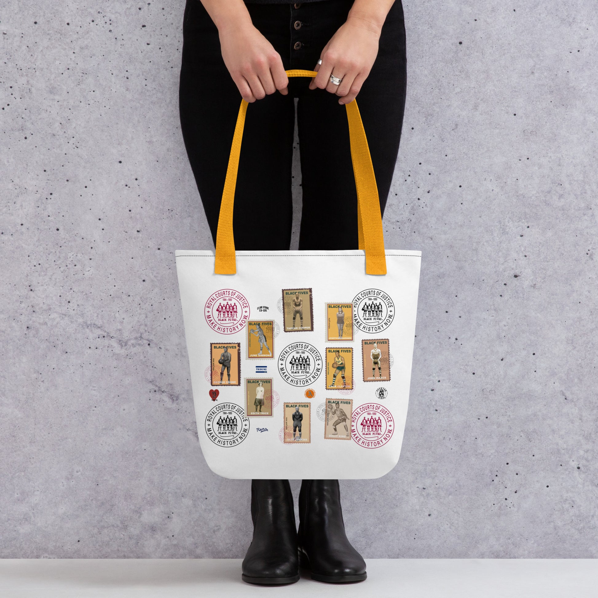Carry your vinyl records, groceries, gym shoes, water bottle, laptop, and anything else that fits in this spacious durable poly-canvas tote bag while celebrating the forgotten important history of African American basketball pioneers who played long before the NBA and WNBA.