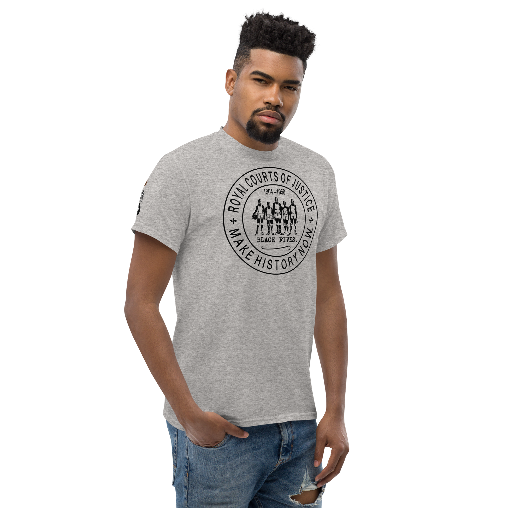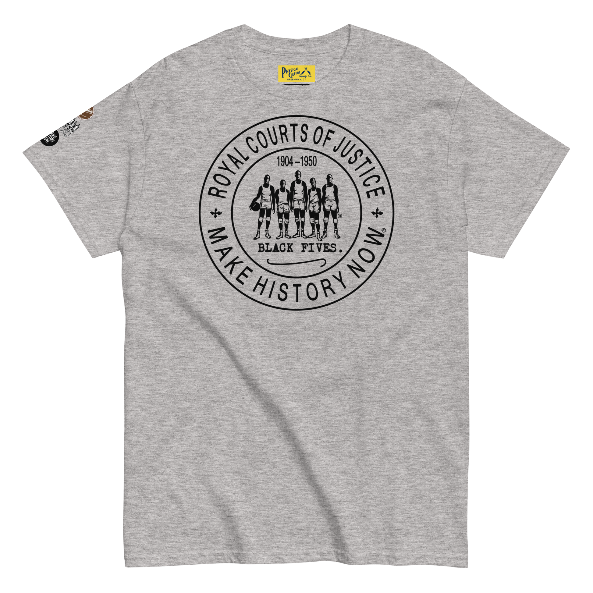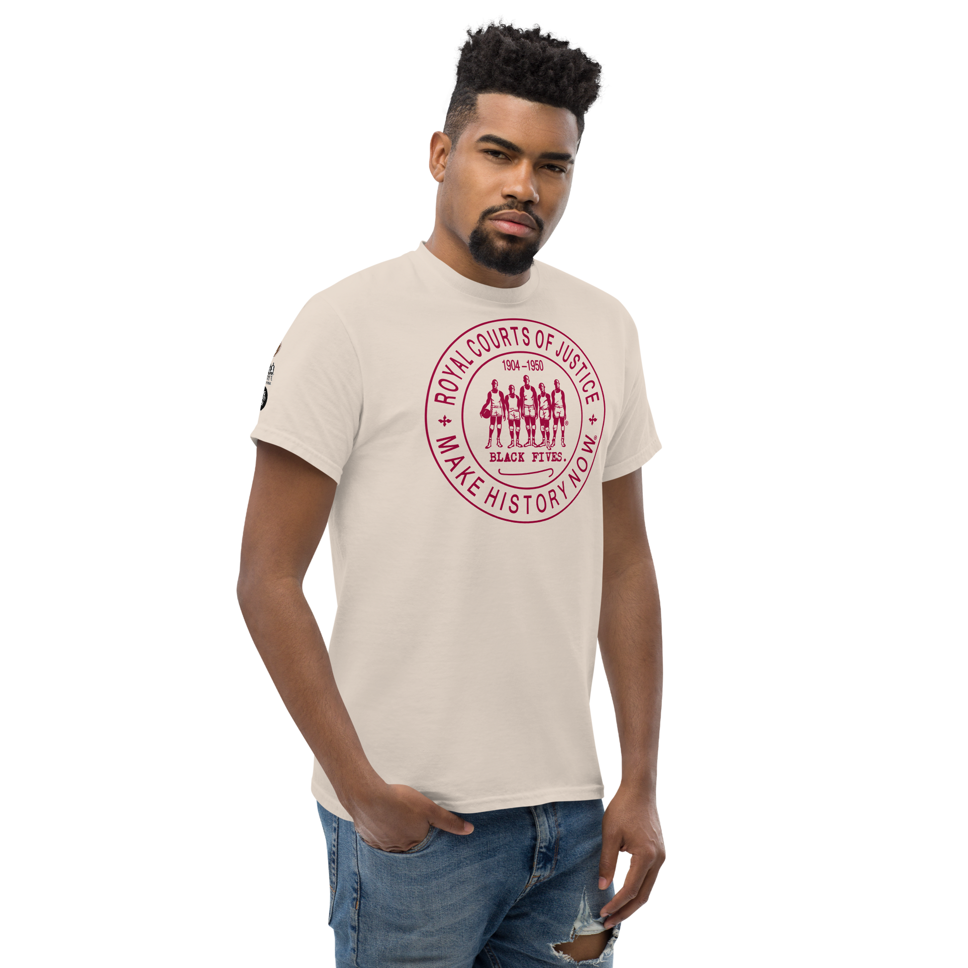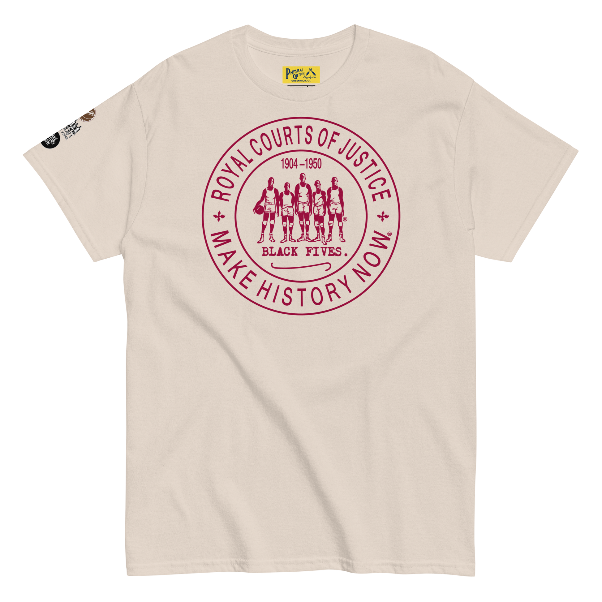 The graphic on this short-sleeve tee shirt is inspired by the official vintage ink stamps used by the Royal Courts of Justice in England to certify legal documents, and we gave that concept a new meaning with our own Royal Courts of Justice Collection.