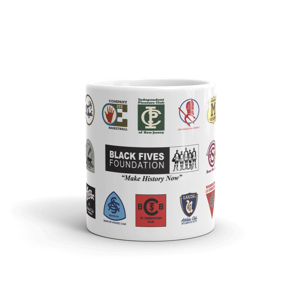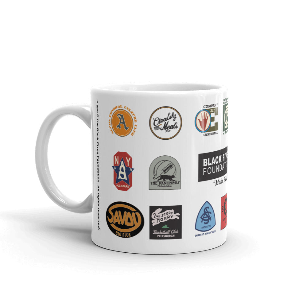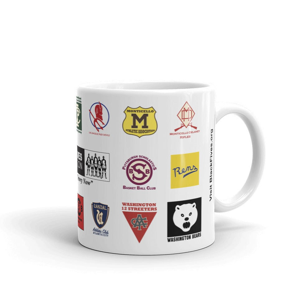 This gorgeous ceramic mug featuring Black Fives Era team logos is only available from the Black Fives Online Fan Shop. Enjoy the insignia of your favorite vintage African American basketball teams. Look up their stories. Start conversations. Give as a unique gift.